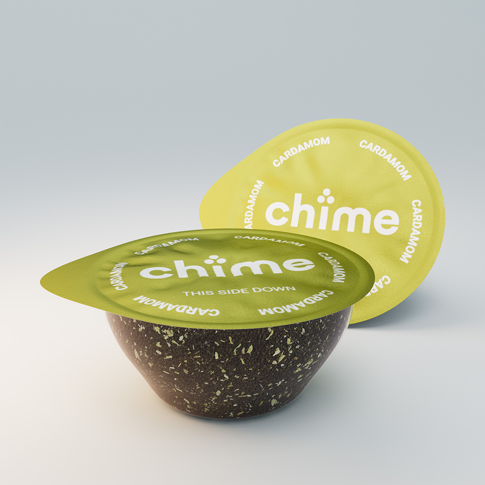 Chime We began by accurately modeling each chaicap, ensuring the form reflected Chime’s product design while allowing room for visual customization based on the flavour.